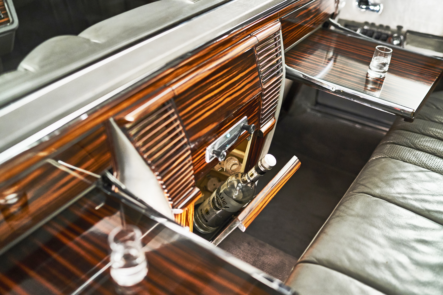 - hydraulisch bedienbare Trennscheibe zum Fond. Der Mercedes-Benz 600 „Breschnew“ ist die einzige produzierte Sechshunderter- Limousine mit Trennscheibe.